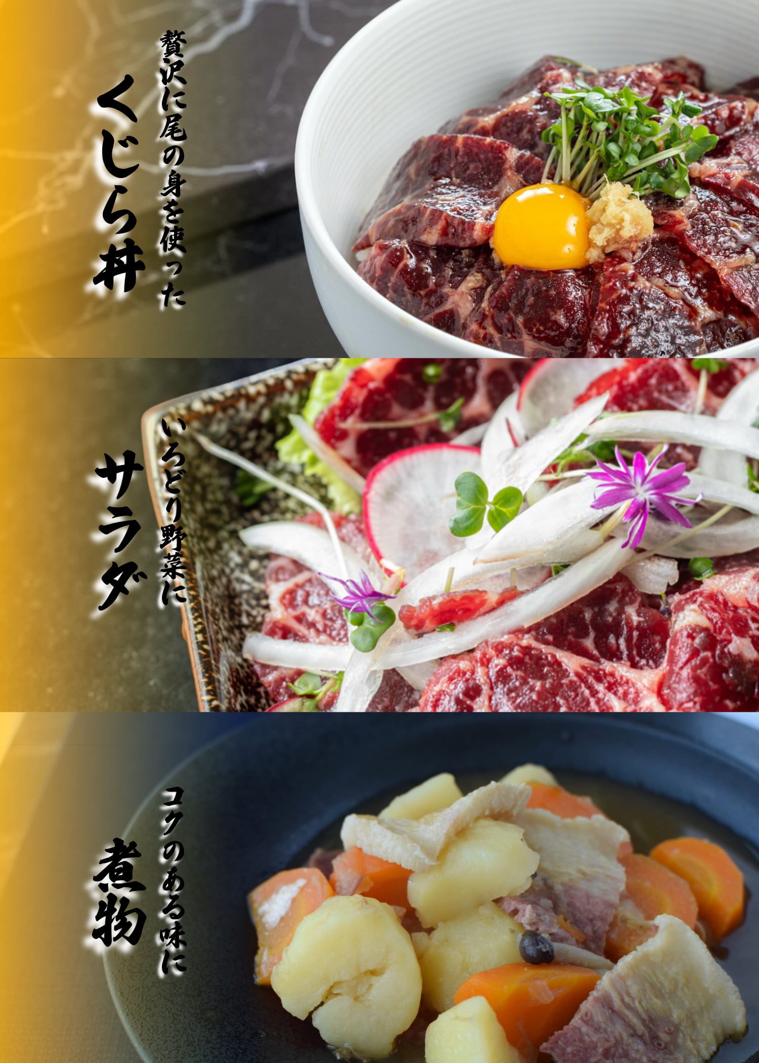各地の遺跡から鯨の骨が発見され、私たちの祖先が感謝の心とともに命を繋いできた証が残されています。江戸時代には「海の恵み」として庶民から武家まで親しまれ、その希少性と滋味豊かな味わいから、特別な日の御馳走や大切な方への贈り物として重宝されてきました。やまくじらの鯨肉4種セットで、特別な時間をお届けします。